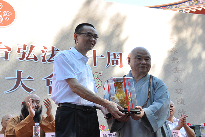 - 福建省民族宗教厅党组成员张东晖与台湾承天寺住持道等法师互赠礼品