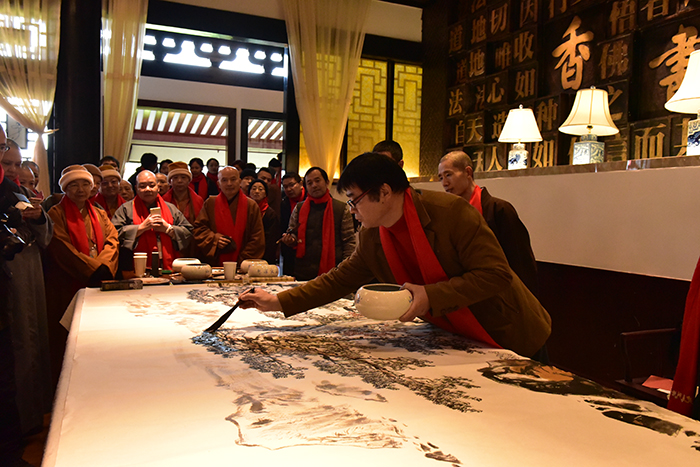 之后,普法法师与领导嘉宾、海峡两岸高僧大德共同为福建省海峡佛教文化交流中心揭牌。闽台两地高僧大德共同见证这一庄严时刻。12时,鼓山涌泉寺在福建省海峡佛教文化交流中心宴会厅设宴款待来自两岸佛教界的高僧大德,闽台两地佛教界代表相互赠送了礼品。