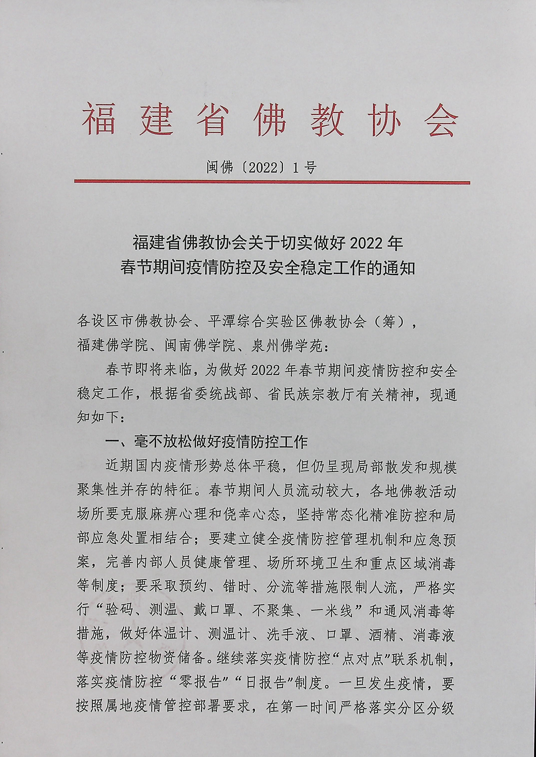 春节即将来临,为做好2022年春节期间疫情防控和安全稳定工作,根据省委统战部、省民族宗教厅有关精神,现通知如下: