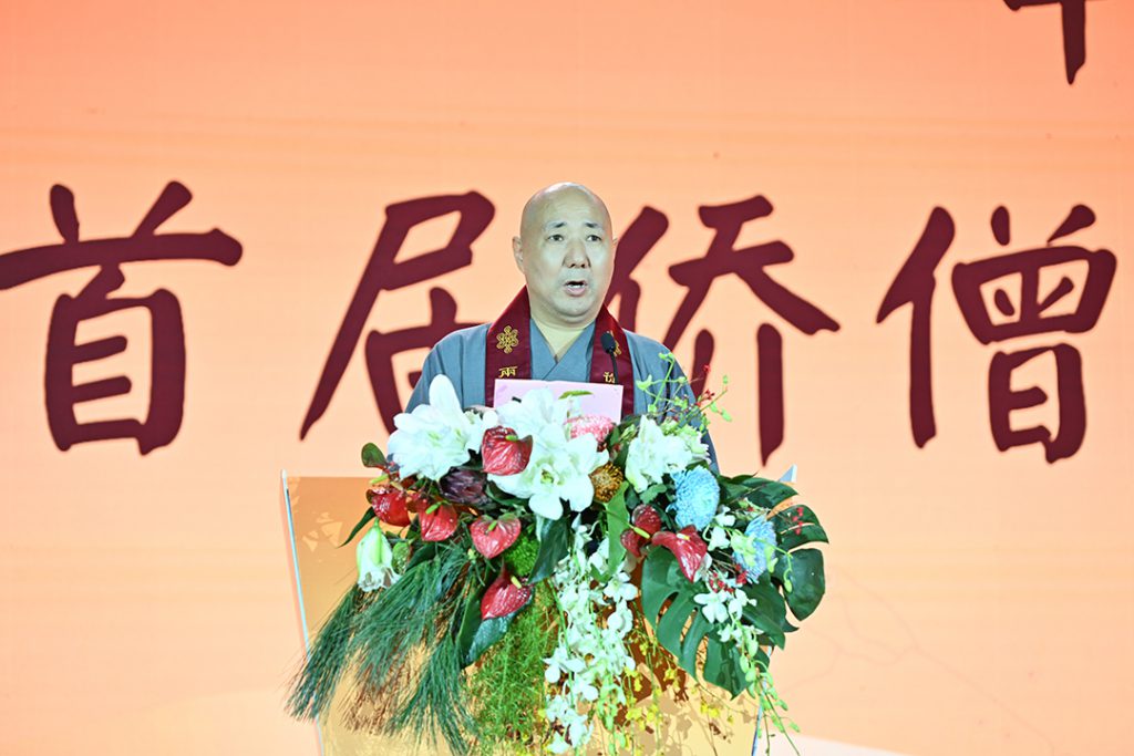 演觉法师在开幕式上讲话,他说,佛教在海外侨胞的文化认同、身份认同中扮演着重要角色,是联结海内外中华儿女的重要文化纽带。希望大家以本次活动为契机,共同致力于实现祖国和平统一和中华民族伟大复兴,为增进中外人民友谊、推动构建人类命运共同体,贡献智慧和力量。