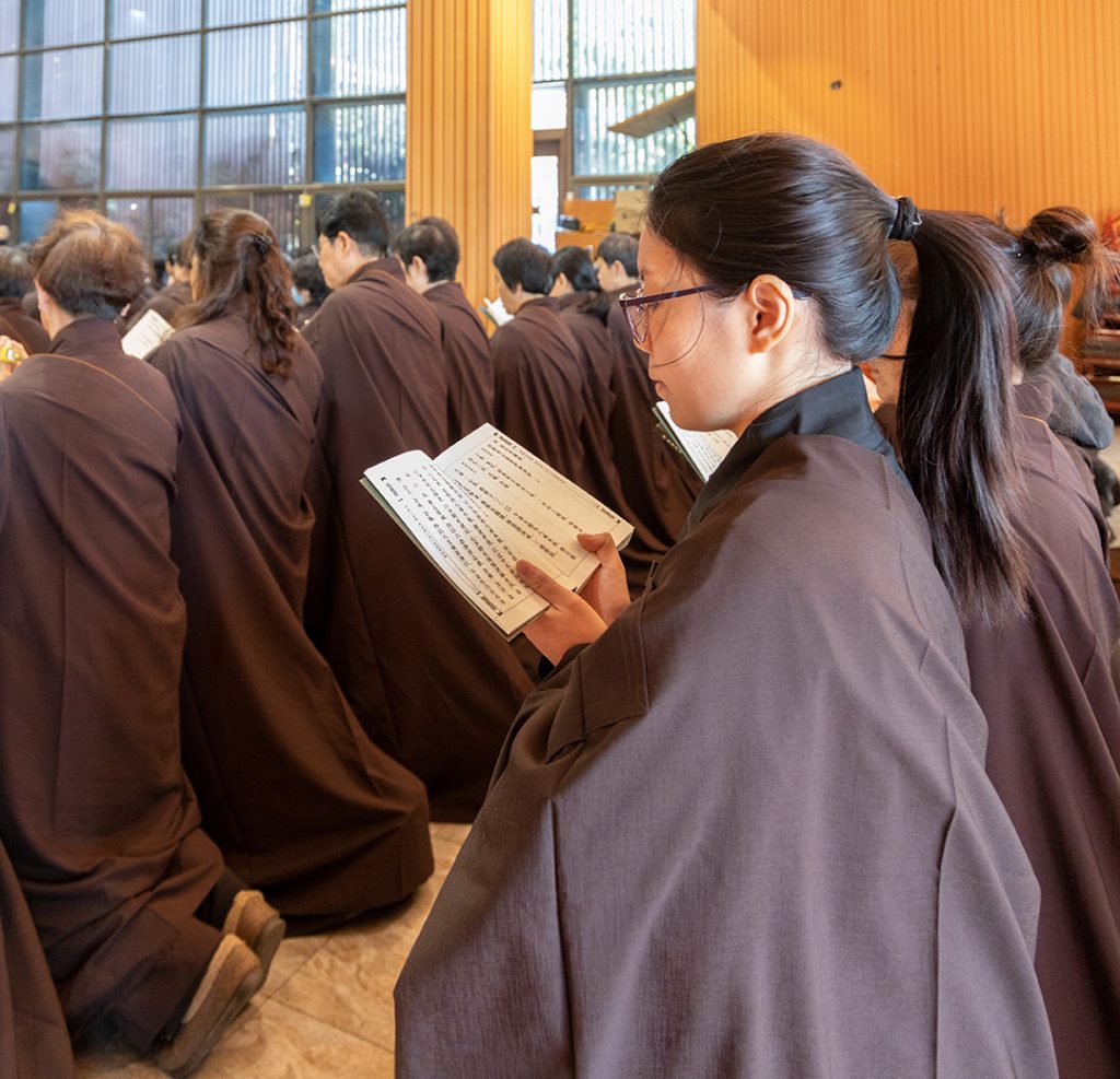 1月1日,法会进入第一天,清晨,数百名新戒与雪峰寺常住,齐聚雪峰讲堂,有序进殿参加早课。