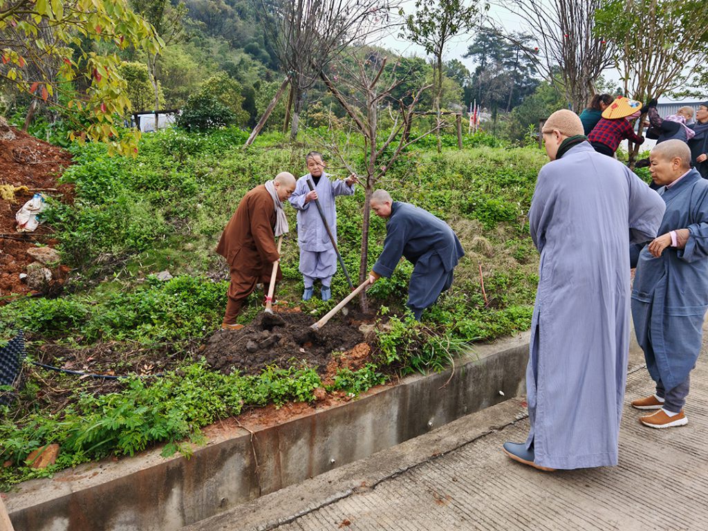 3月7日,龙岩市新罗区佛教协会开展2024年义务植树活动。省佛教协会副秘书长、新罗区佛教协会会长光良法师一行前往新罗区龙岩洞公园种下400株樱花树苗,以实际行动践行了“绿水青山就是金山银山”的发展理念,助推了龙岩宜居宜业城市建设工程。