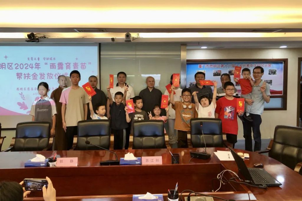 近日,厦门思明区民政局、思明区民族宗教局、思明区慈善会、虎溪岩寺慈善基金会在中华街道办共同举行2024年思明区“雨露育青苗”结对帮扶金发放仪式,为30名困难家庭儿童每人发放2500元帮扶金。